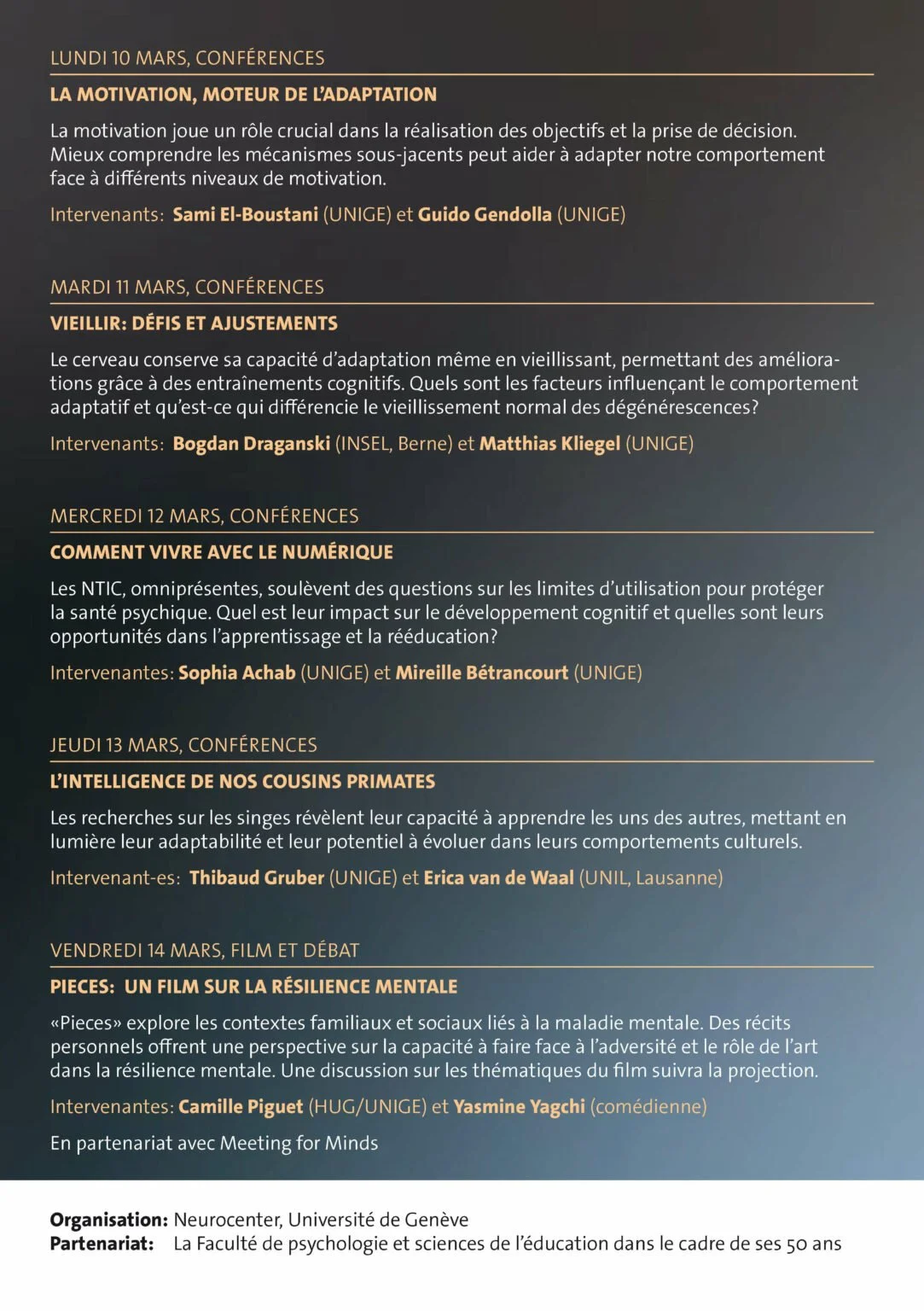 Meeting for Minds est ravi de participer à la Semaine du Cerveau 2025 de Genève, organisée par le Neurocenter de l’Université de Genève.