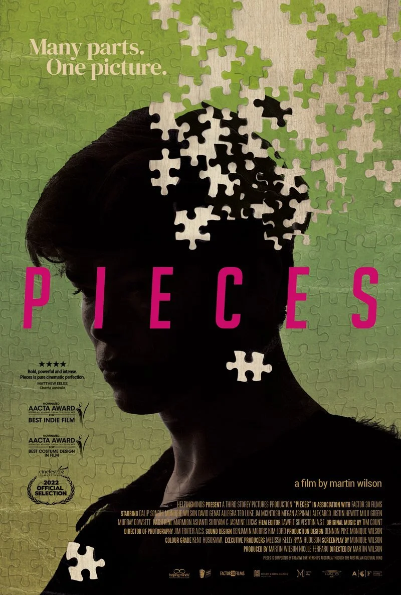 "PIECES is a powerful drama, visually acute and personally confronting, dealing with family and social circumstances any of us could face. It doesn’t proselytize rather it lays out the territory, some of which is disturbing. But not all, it does show how the light can shine through even in the darkest of terrain. We do need to know about these things and Pieces helps us along the way. A must see and a must talk about afterwards"